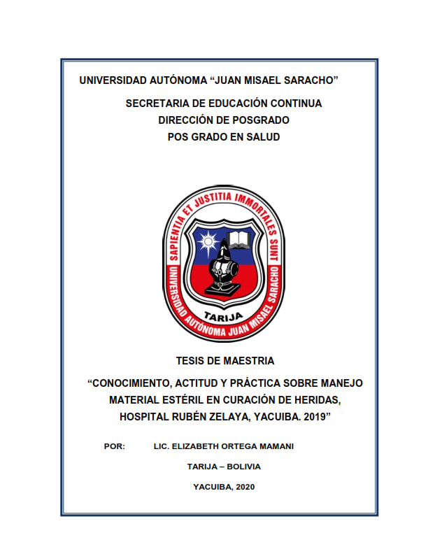 CONOCIMIENTO, ACTITUD Y PRÁCTICA SOBRE MANEJO MATERIAL ESTÉRIL EN CURACIÓN DE HERIDAS, HOSPITAL RUBÉN ZELAYA, YACUIBA. 2019